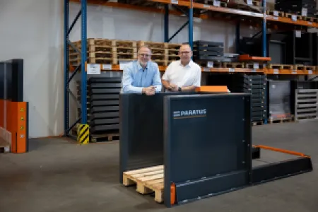The SW-PARATUS GmbH conquers the logistics market with its patented pallet changer, the PARATUS® Change. Pallets can be changed in less than 30 seconds – mechanically, gently on the goods, and ergonomically for the operator. What began as a spontaneous idea over a beer has grown into a revolution in the logistics industry: In 2015, Ralf Schauties and Lars Wellerdiek developed the innovative pallet changer for their own use. Today, more than 700 companies worldwide have significantly optimized their processes with a PARATUS® CHANGE.