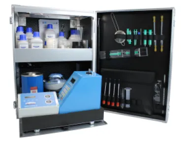 The "FUEL AND LUBE OIL TEST CABINET" is a portable laboratory specifically designed for on-site condition monitoring of fuel, lube and hydraulic oil. The Cabinet contains all necessary test equipment for regular measurement of crucial parameters of fuels, lube and hydraulic oil in the engines systems and enables direct assessment of test results. Any occurring changes in the oil condition are immediately observable, and the respective adequate measures regarding maintenance and services can be taken at the exact time when it is necessary.