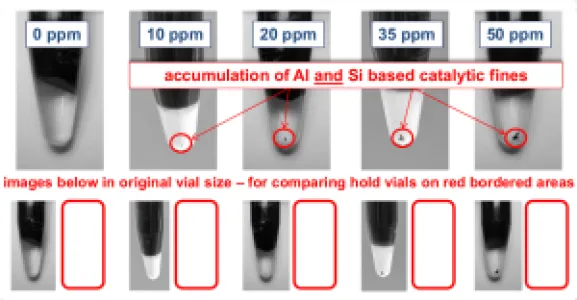 The fuel oil samples prepared with relevant reagents and then centrifuged are ready for immediate quantitative evaluation of cat fines concentration. The amounts of cat fines detected in the samples are assessed visually in accordance with a comparison chart included in the test kit "MT CAT FINES CHECK".